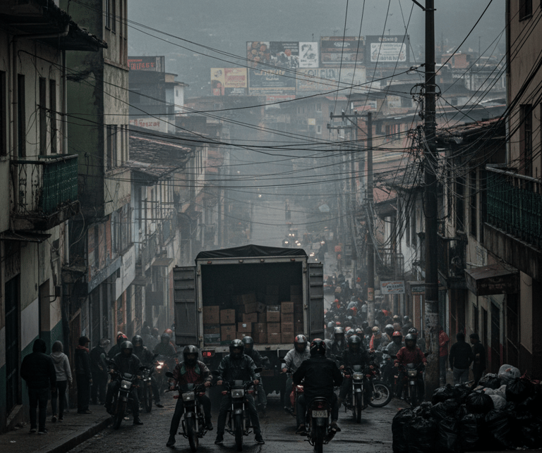 El rompecabezas de la Movilidad: Al ser un pueblo construido sobre el filo de una montaña, sus calles son estrechas y el crecimiento del parque automotor (motos y carros) ha colapsado el centro. ¡Parquear o circular en horas pico es un caos! 🛵🚗❌